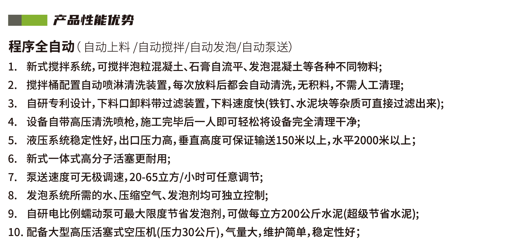 LV-FP-65C泡沫轻质土作业站:既可用于高速路桥头桥背填充,高速路拓宽等,又可用于屋面保温施工等,一机多用。