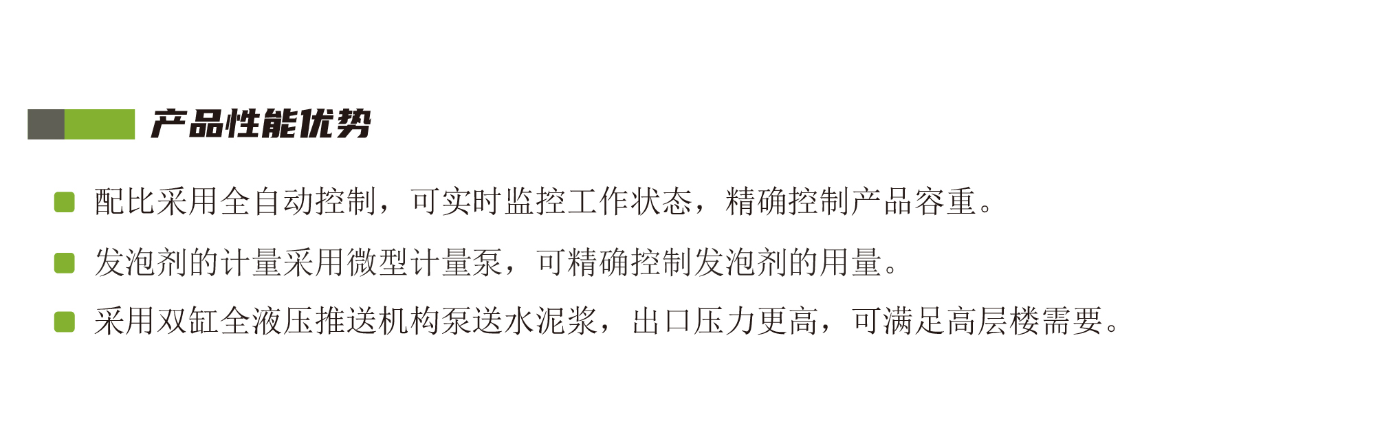 LV-FP-55C泡沫轻质土作业站采用双缸全液压推送机构泵送水泥浆,出口压力高,可使用范围广。
